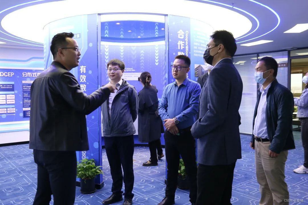 在本次走访交流中,杨锦帆主任等领导在秦储CEO李伟鹏、蚂蚁集群CEO杜鹏的陪同下参观了秦储总部。在参观过程中,秦储代表就秦储定位、发展方向和公司规模等内容进行了简单介绍。