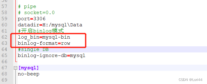 2)修改my.ini中的配置,如下图