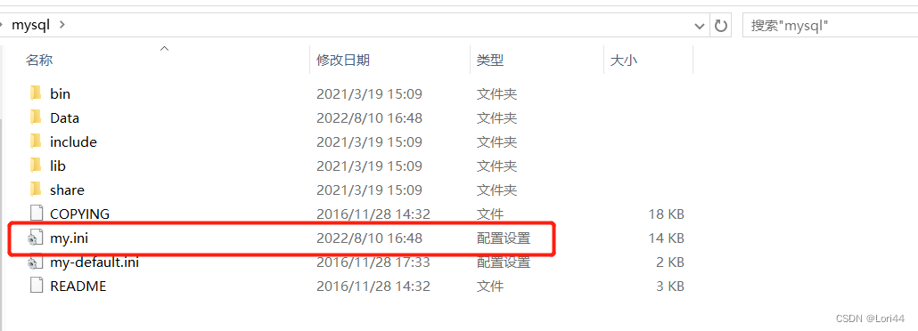 1)找到mysql中的my.ini文件(如下图)