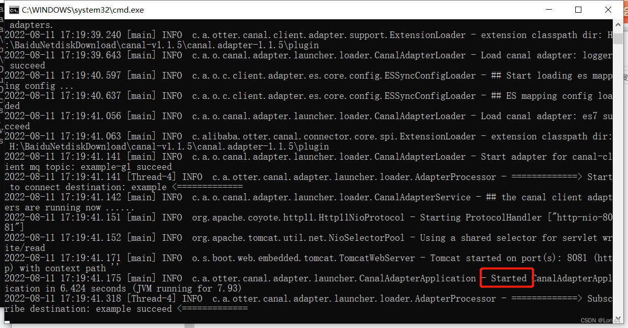 启动 canal.deployer 进入canal.deployer-1.1.5\bin 双击 startup.bat
