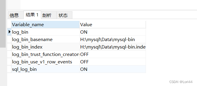 设置完成之后,重启mysql,输入命令查看binlog是否启用成功